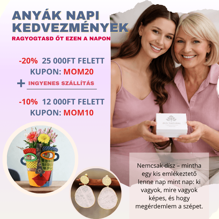 A Zen Natural ékszerek nemcsak valódi ásványokból készülnek, hanem minden darab egyedi, gondosan válogatott. Több mint 30.000 elégedett vásárlónk van, gyors szállítással és megbízható ügyfélszolgálattal dolgozunk. Nálunk nem csupán egy ékszert kapsz, hanem egy élményt, egy olyan társat, ami energiát, harmóniát és örömöt hoz a mindennapjaidba, mert megérdemled a szépet.