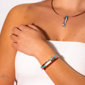 Karkötő mágneses bilincs rögzítéssel, kézzel készített, színes zománc festéssel. Különleges, minőségi anyaga és mintázata teszi egyedivé és időtállóvá.